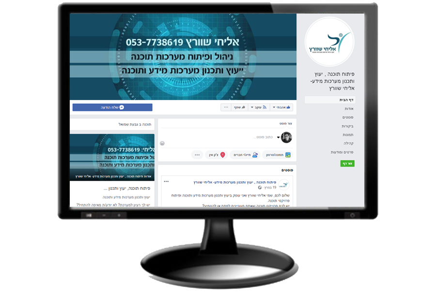 עיצוב דף פייסבוק עסקי לאליחי שוורץ - פיתוח תוכנה, יעוץ ותכנון מערכות מידע