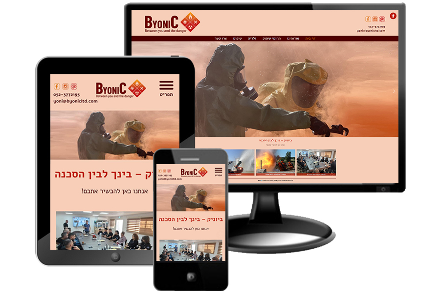 עיצוב ובניית אתר לחברת ביוניק - ייעוץ והדרכה בתחום בטיחות באש ותגובה מהירה באירועי חירום.