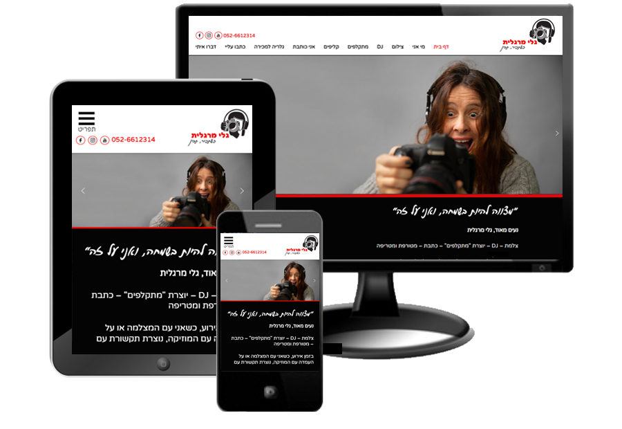 עיצוב ובניית אתר תדמיתי רספונסיבי לגלי מרגלית - צלמת, דיג'יי, ויוצרת הקלפים "מתקלפים"