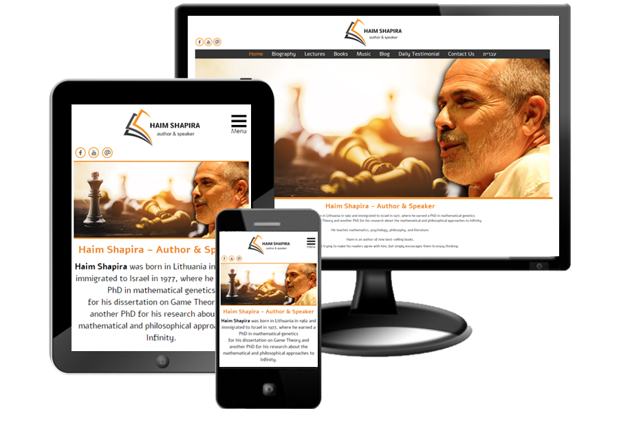 עיצוב ובניית אתר תדמית רספונסיבי לד"ר חיים שפירא סופר ומרצה בו תוכלו למצוא את כל המידע אודותיו: