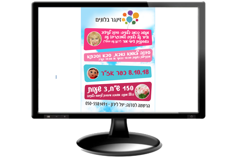 עיצוב פלייר סדנת עיצוב בלונים עבור זינגר בלונים עיצוב בלונים לאירועים