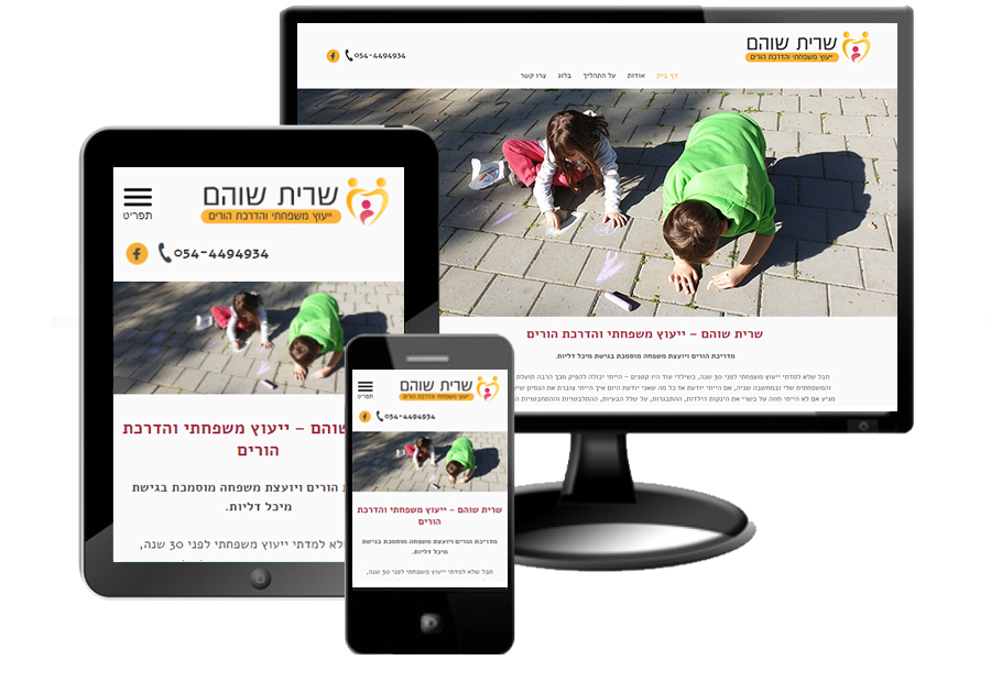 עיצוב ובניית אתר תדמיתי רספונסיבי לשרית שוהם - ייעוץ משפחתי והדרכת הורים